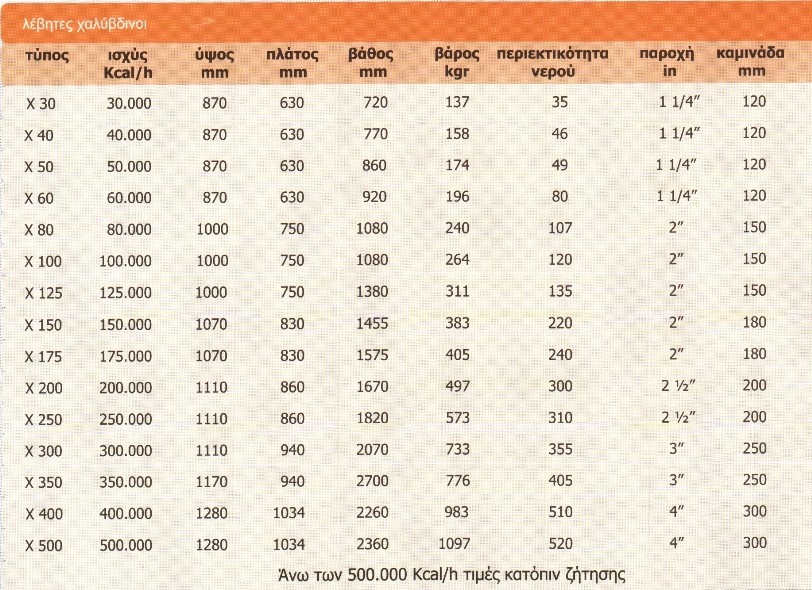 Χαλύβδινοι πιεστικοί λέβητες με φλογαυλούς απο σωλήνες τούμπο άνευ ραφής, θερμικής ισχύος απο 34 έως 580 KW [30.000...500.000 kcal/h]