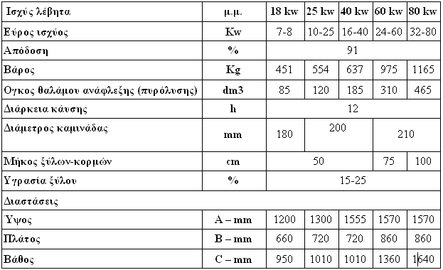 Δυνατότητα καύσης ξύλων εώς 50cm ( 18kW, 25kW, 40kW), εώς 75cm (60kW) και εώς 100cm (80kW)