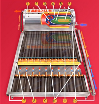 Ο πρωτοποριακός σχεδιασμός του μανδύα για το κλειστό κύκλωμα που διαθέτει ο MEGASUN (από την Ηλιοακμή Α.Ε.). εγγυάται τη σταθερή του λειτουργία ακόμα και με παγωνιά και ταυτόχρονα εξασφαλίζει τους συλλέκτες από τον κίνδυνο να βουλώσουν από τα άλατα.