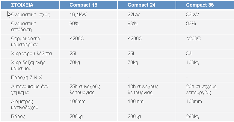 Η δεξαμενή αποθήκευσης καυσίμου (pellet) έχει χωρητικότητα 100 kg (για το μοντέλο Compact 35) εξασφαλίζοντας μεγάλη αυτονομία λειτουργίας.