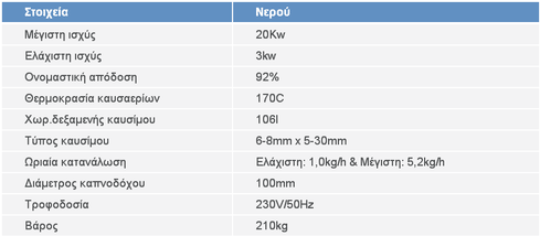 *Απαιτείται καμινάδα διαμέτρου 100mm για την απαγωγή των καυσαερίων