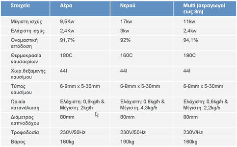*Απαιτείται καμινάδα διαμέτρου 80mm για την απαγωγή των καυσαερίων